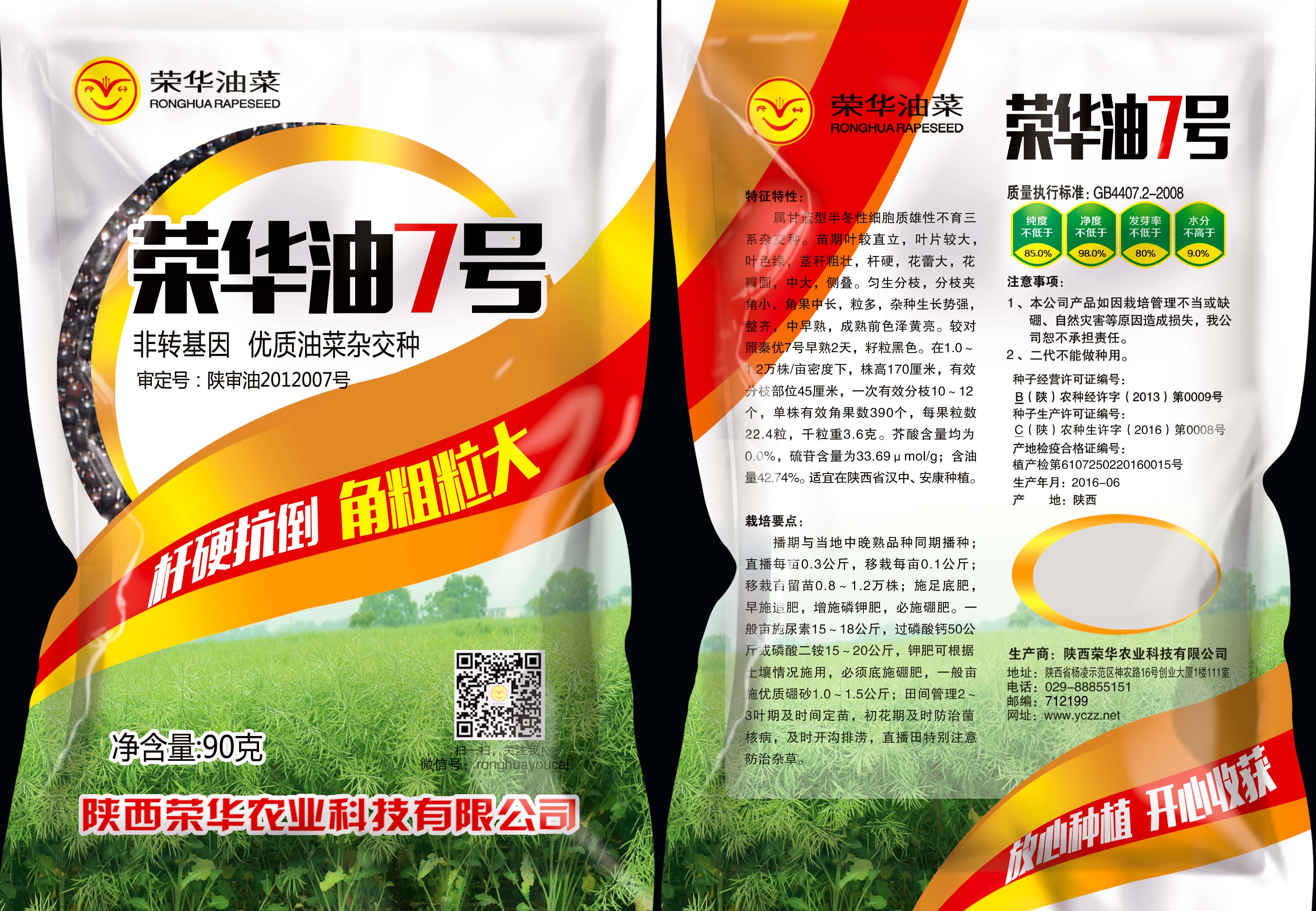 榮華油7號(審定編號:陜審油2012007)是陜西榮華農(nóng)業(yè)科技有限公司自主選育的甘藍(lán)型、半冬性細(xì)胞質(zhì)雄性不育三系雜交種,適宜在陜西漢中、安康和生態(tài)類型相似區(qū)域種植。該品種分枝部位低、分枝數(shù)多、分枝夾角小、株型緊湊、適合密植和機(jī)械化收割,抗倒性強(qiáng),中抗菌核病,是目前生產(chǎn)上輕簡化栽培的最優(yōu)品種之一。